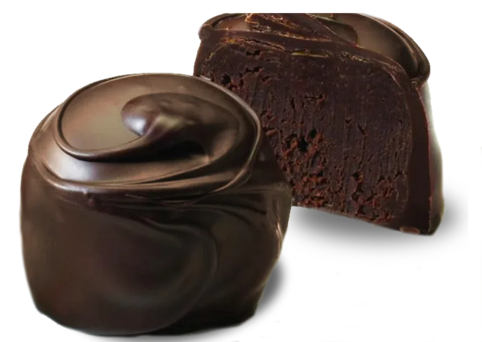 Delightful cherry purée and dark chocolate center, dipped in dark chocolate.