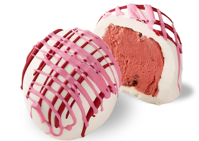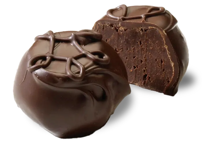 Decadent dark chocolate center blended with raspberry purée, dipped in dark chocolate.