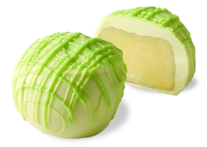 White chocolate center infused with lemon and lime flavorings dipped once in white chocolate.